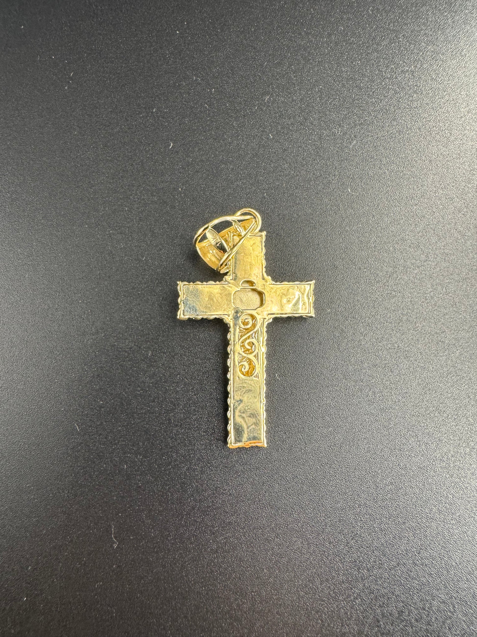 14K 3 COLORED CROSS WITH CHRIST AND ZIRCONS