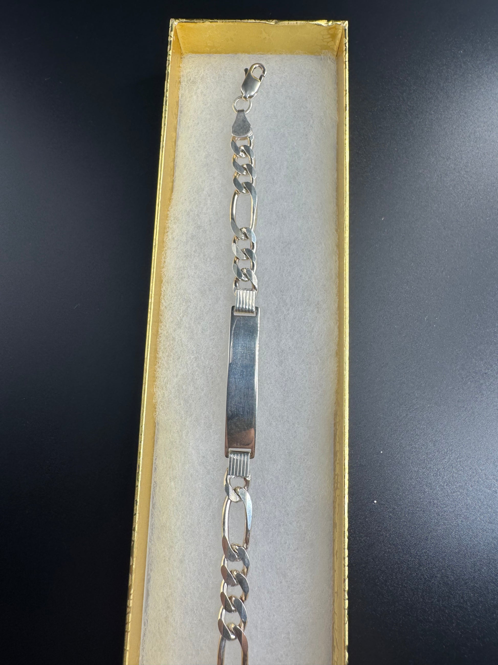 SILVER FIGARO LINK NAME PLATE BRACELET